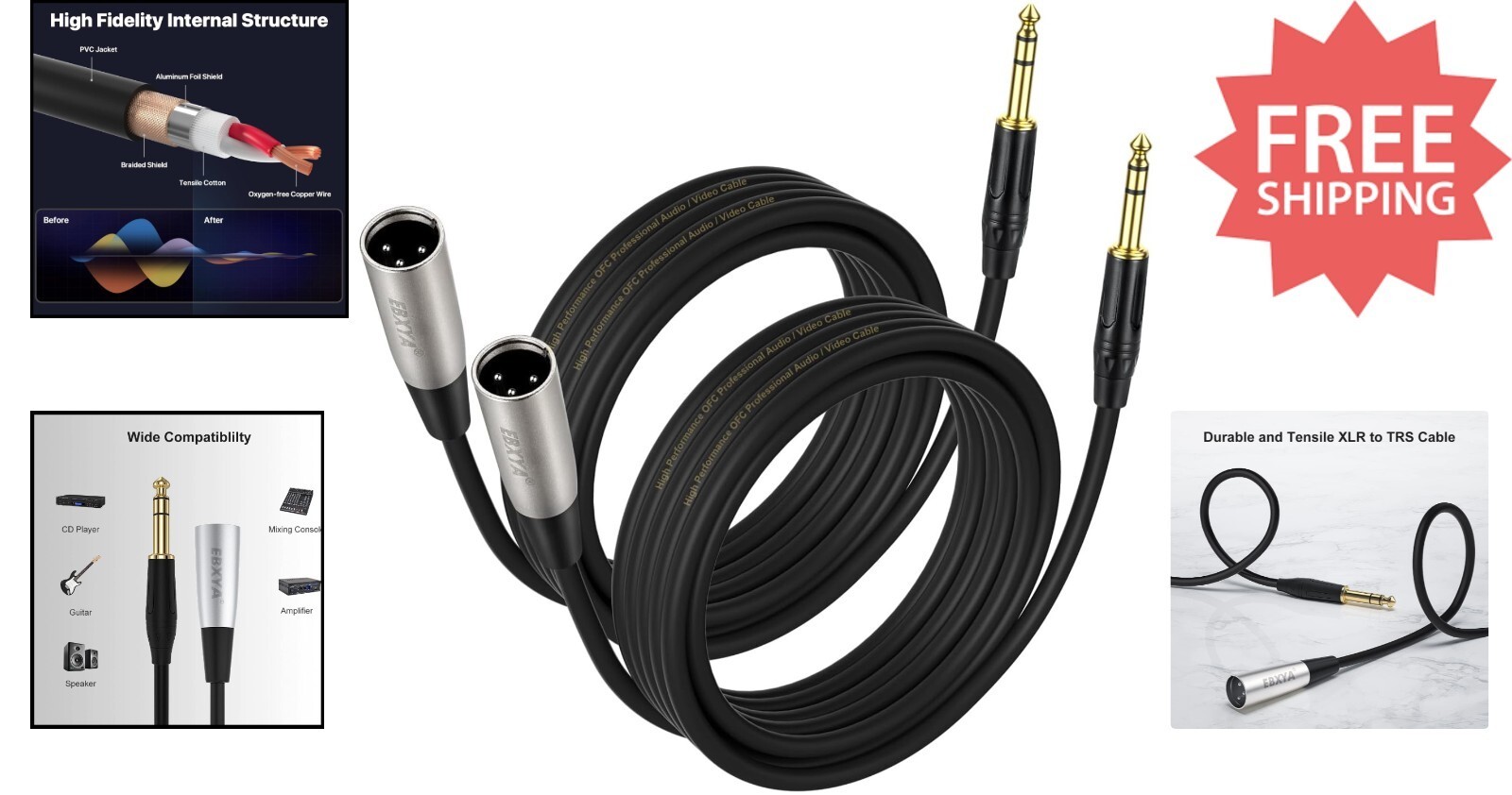Upgrade your audio setup with our professional-grade 1/4 TRS to XLR male cable. Featuring a high-density braided copper shield and oxygen-free copper conductor, it ensures superior anti-interference performance and rapid transmission. The balanced three-port connection (Ground, Positive, Negative) and reinforced metal connectors guarantee a reliable, secure link. Designed for wide compatibility, it seamlessly connects amplifiers, mixers, speakers, guitars, and more?whether at home, outdoors, or during recordings. The flexible PVC jacket offers durability and easy cleaning. Each package includes one high-quality cable, backed by our dedicated customer service team.