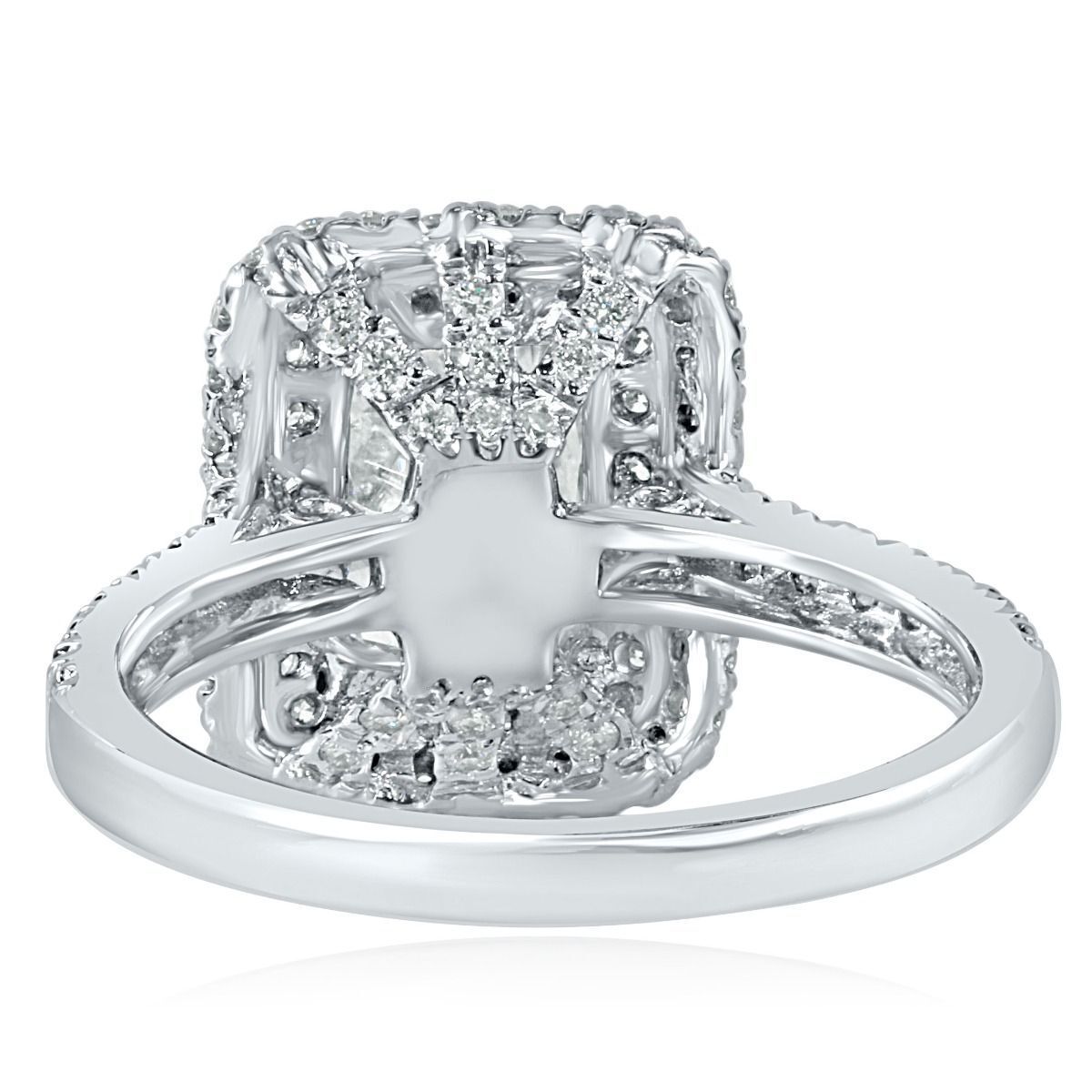 1.61Ct IGI E-VS2 Lab Grown Radiant Diamond Halo Ring 14k White Gold 2.33 TCW
