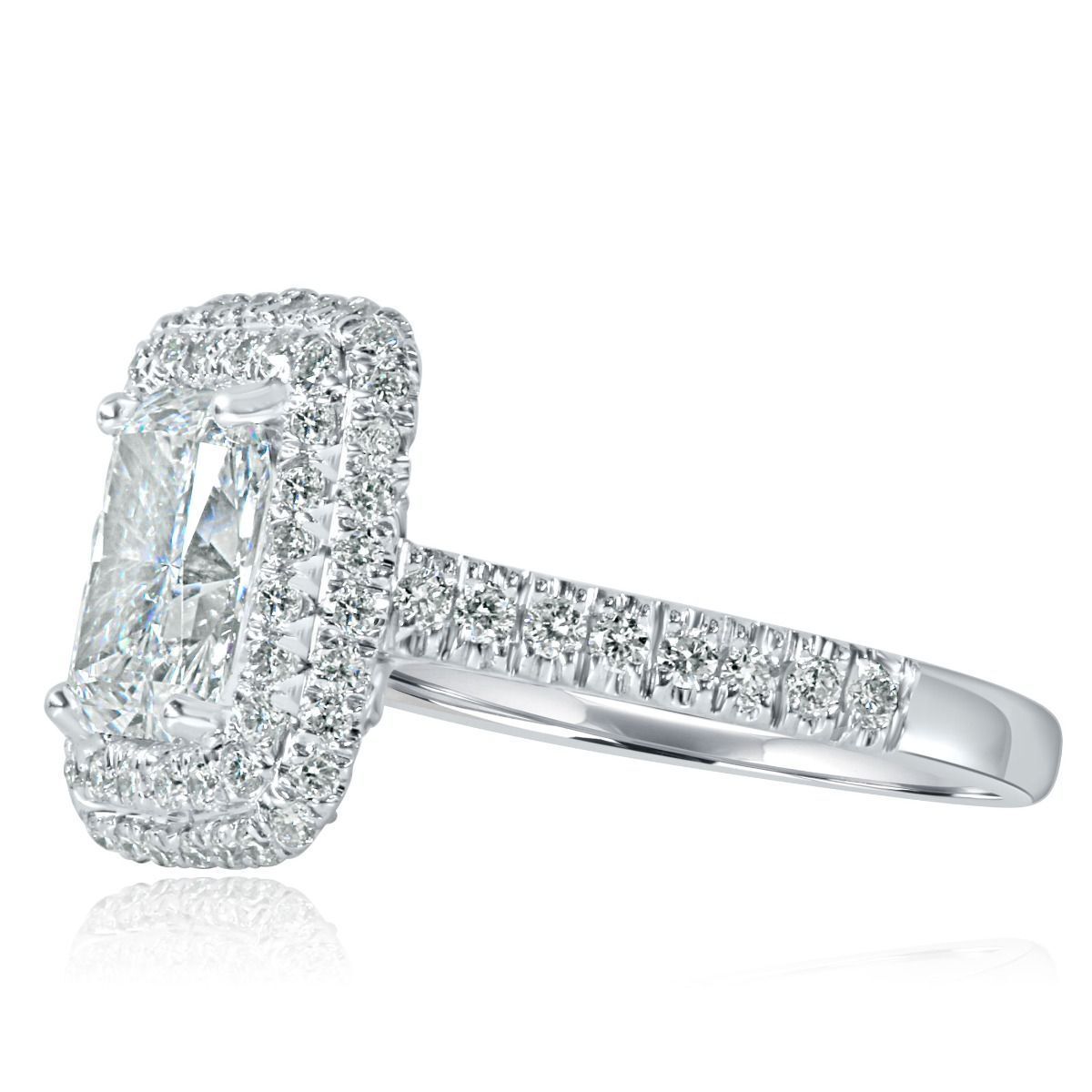 - 1.61Ct IGI E-VS2 Lab Grown Radiant Diamond Halo Ring 14k White Gold 2.33 TCW