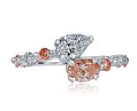 This modern bypass design diamond ring features 0.95 carat colorless pear and pink oval shaped lab grown diamond surrounded by of 0.69 carat round pink brilliant cut and colorless marquise brilliant cut lab grown diamonds in prong setting. Crafted of 14k white gold, the ring has a total diamond weight of 1.64 carats. The combination of pink and colorless diamonds, along with various cuts, creates a stunning visual effect, emphasizing the vintage Art Deco style!! The use of lab-grown diamonds ensures ethical sourcing while maintaining brilliance and quality!