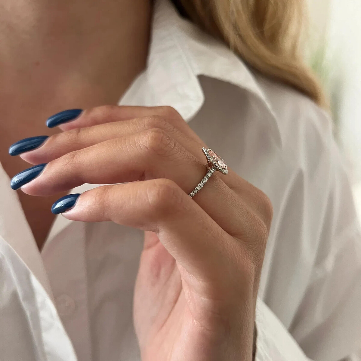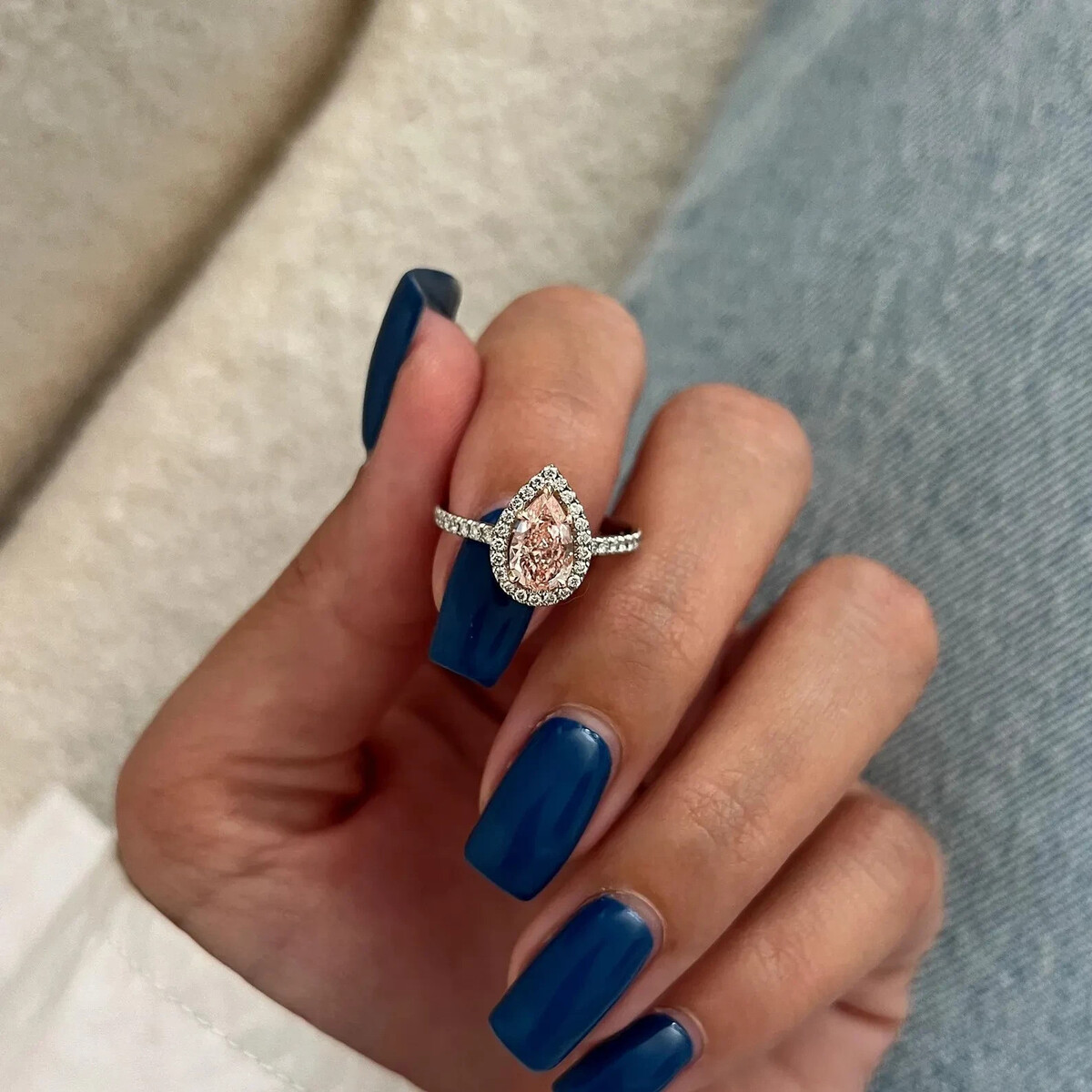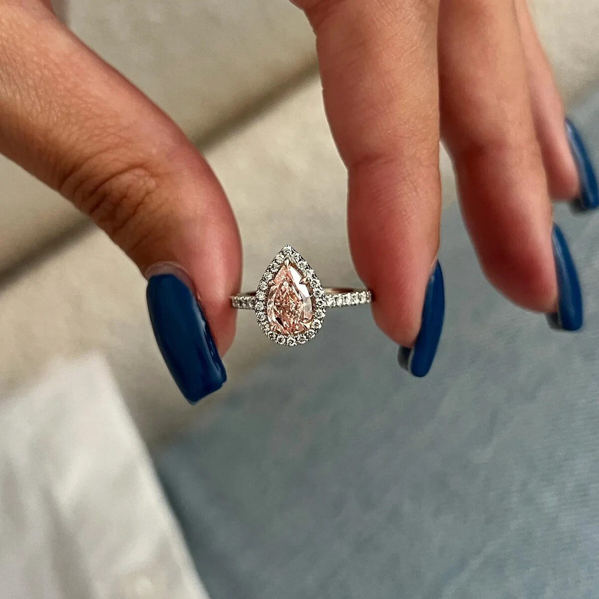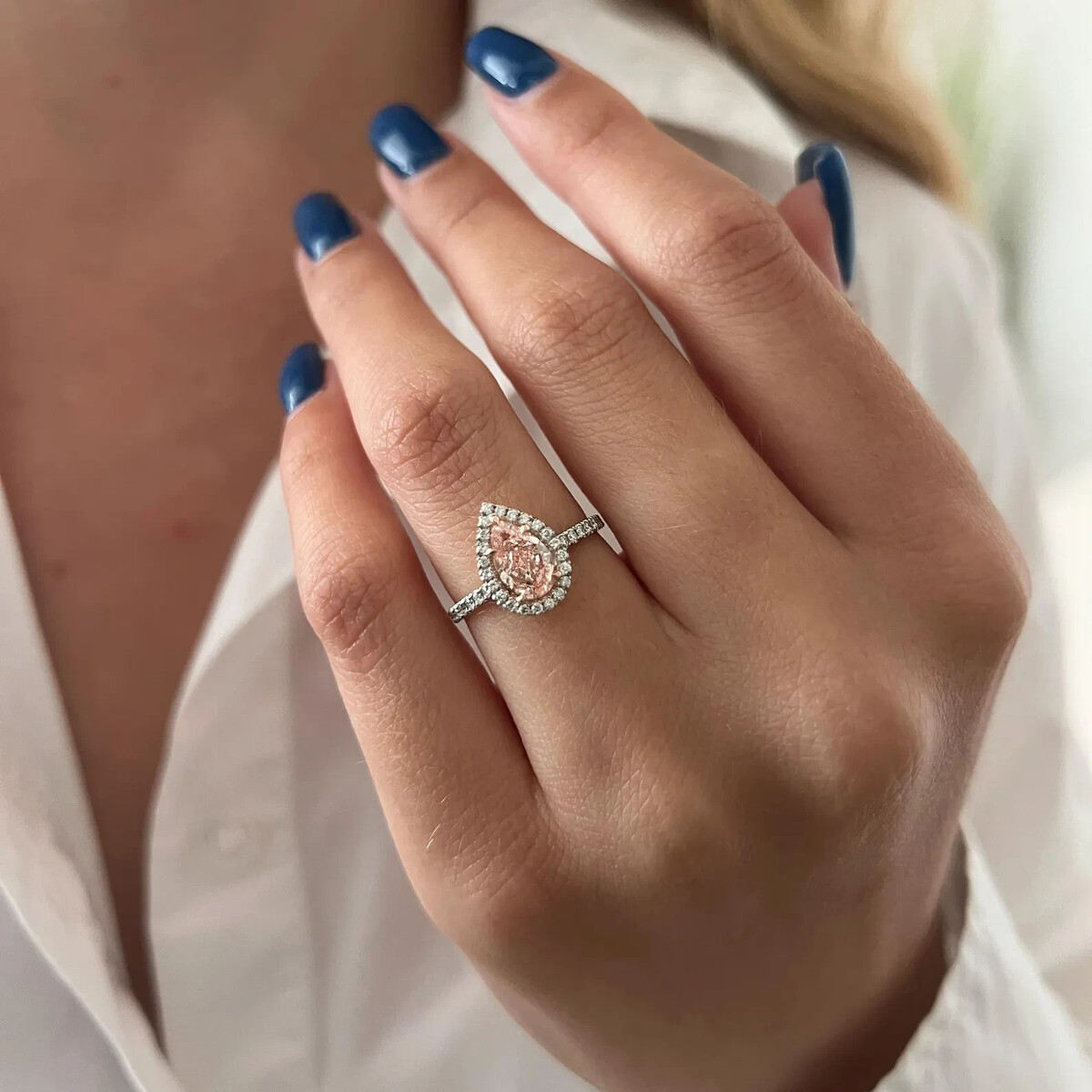1 Ct Pear Fancy Intense Pink Lab Grown White Gold Diamond Halo Engagement Ring