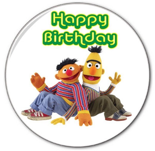 This listing is for QUANTITY 1 HAPPY BIRTHDAY FROM BERT AND ERNIE ON SESAME STREET BUTTON. This is a 3" Safety Pinback Button. YOUR ORDER WILL SHIP WITHIN 1 DAY FREE FIRST-CLASS MAIL FROM ARIZONA, UPGRADES IN SHIPPING SPEED ARE AVAILABLE AT CHECKOUT IF NEEDED DEPENDING ON YOUR LOCATION.