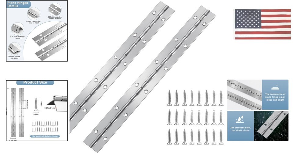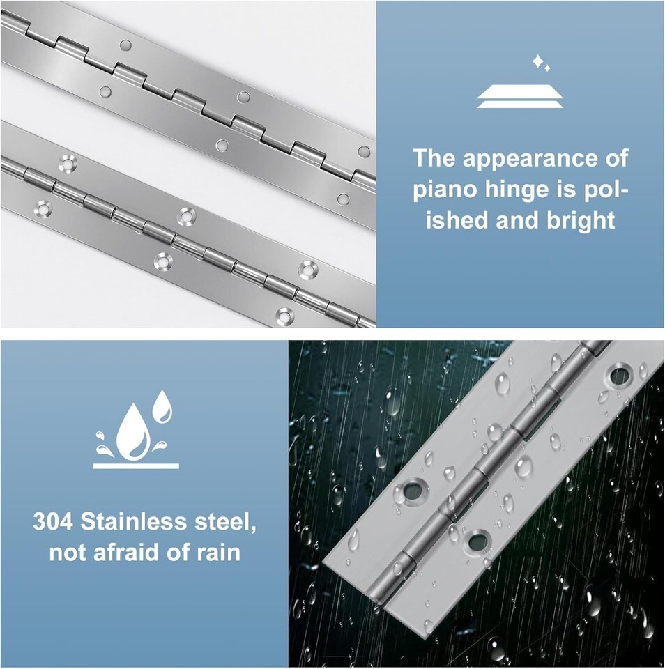 Elevate your woodworking and DIY projects with our 1 Pair Piano Hinges, expertly crafted from durable 304 stainless steel. Designed for quick and easy installation, these hinges feature a sleek finish that complements any design aesthetic. Whether you're making modifications to your RV, building custom storage boxes, or upgrading display cabinets, our versatile hinges deliver a reliable, smooth performance that stands the of time.