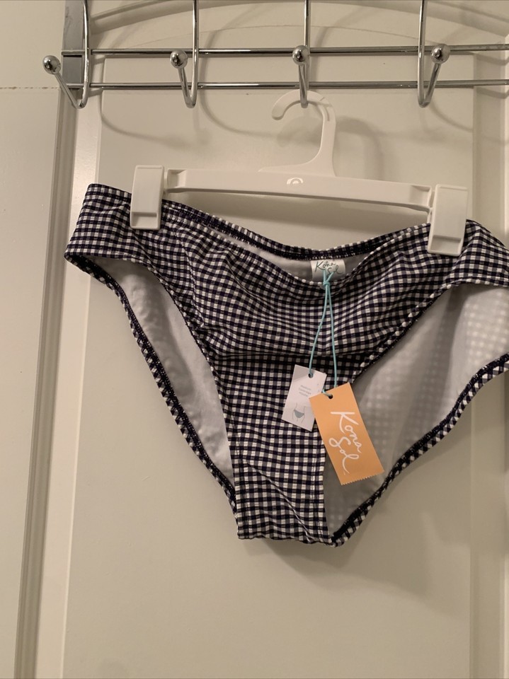 Kona Sol Blue And White Gingham Bikini Bottom Womens XL New with tag.