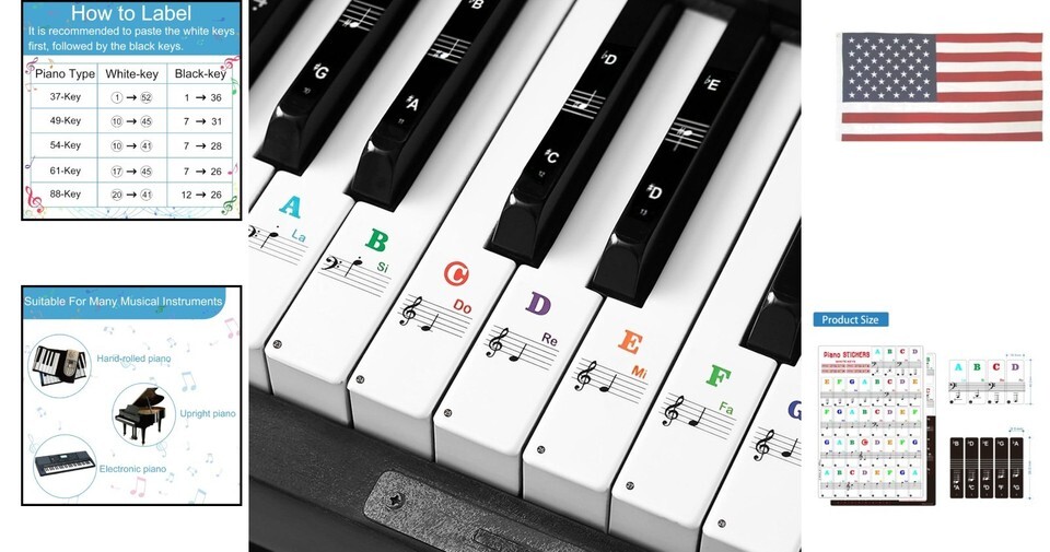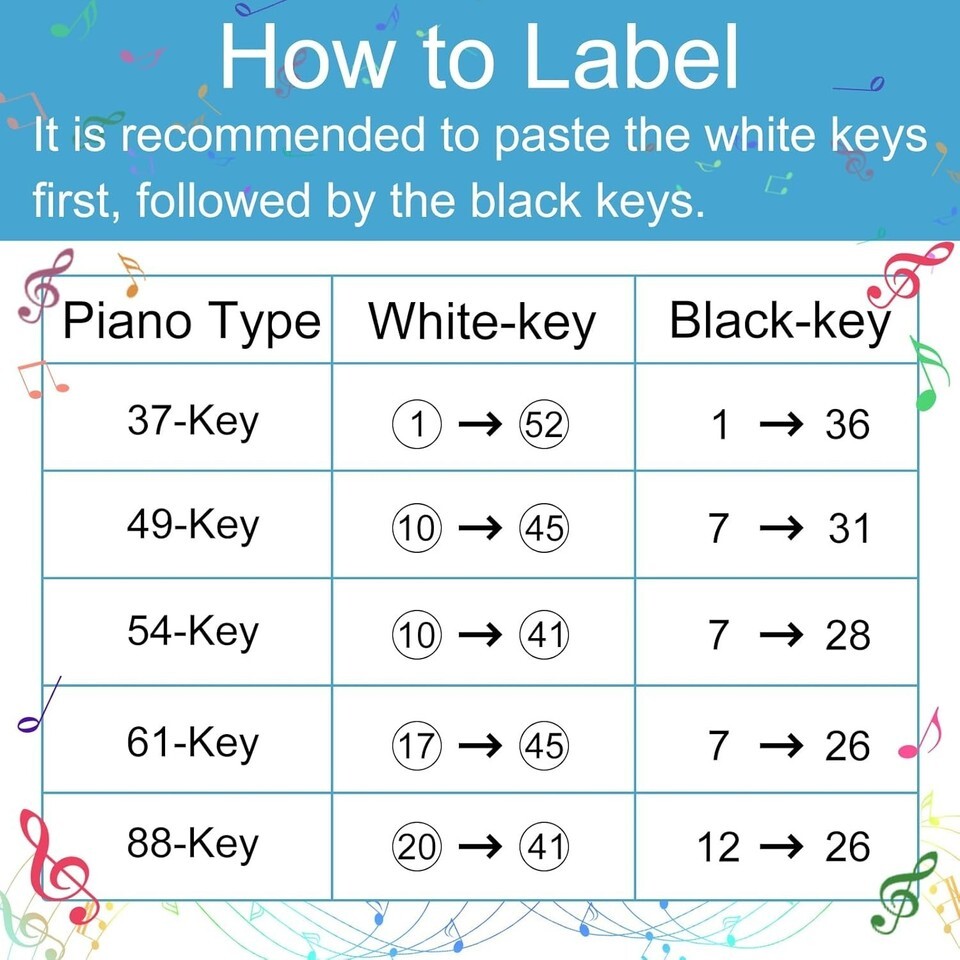 Universal Compatibility: Easily adaptable to various keyboard instruments, these stickers suit pianos with 88, 76, 61, 54, or 49 keys, ensuring a seamless fit for multiple setups.
