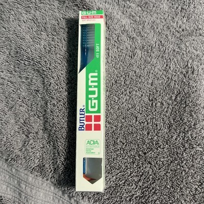 1 Vintage Butler G-U-M Soft Toothbrush 4 Row Adult 411 Full Size Head Blue