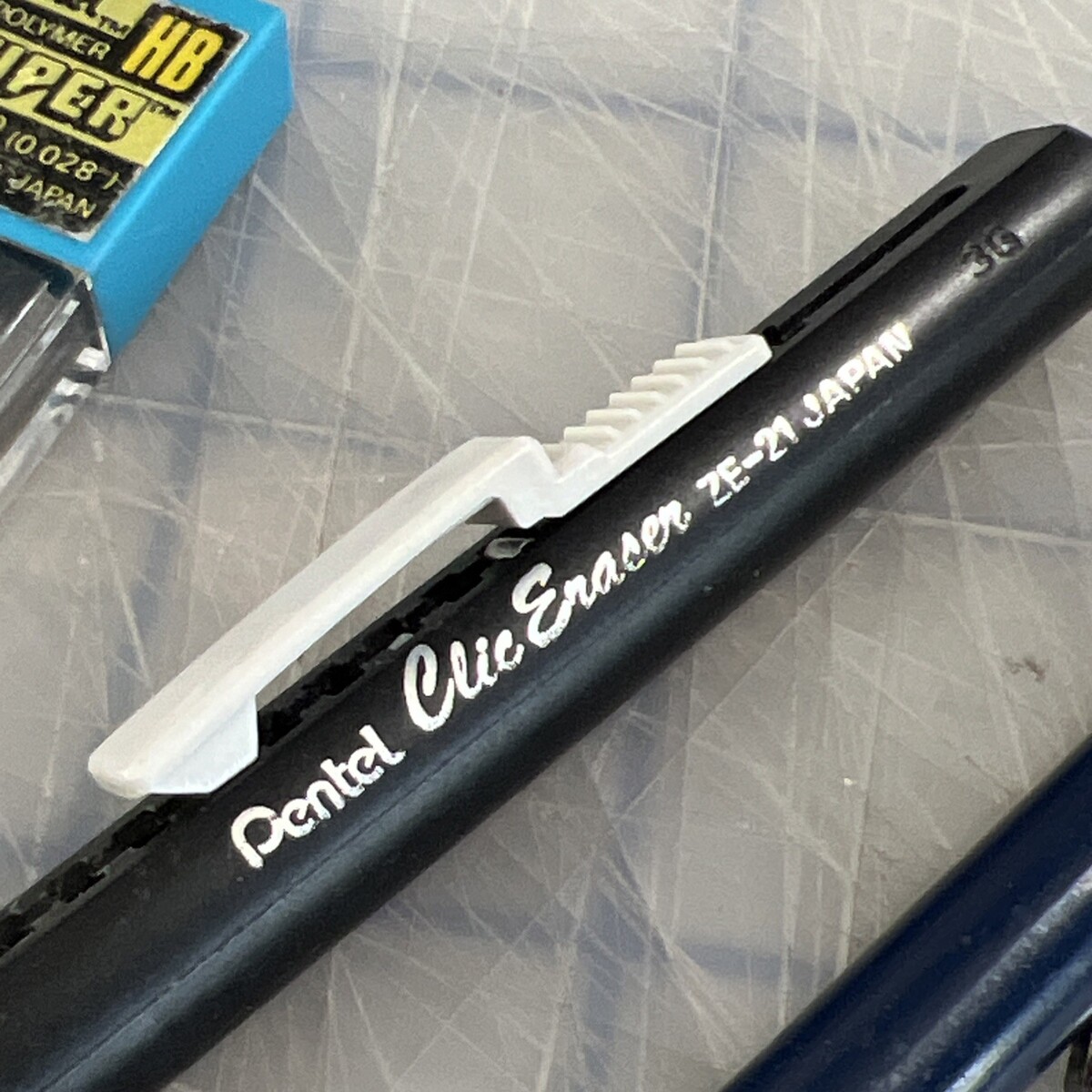 - 1 VINTAGE PENTEL PENCIL: "QUICKER CLICKER" 0.7mm PD347 w/lead & Eraser Blue