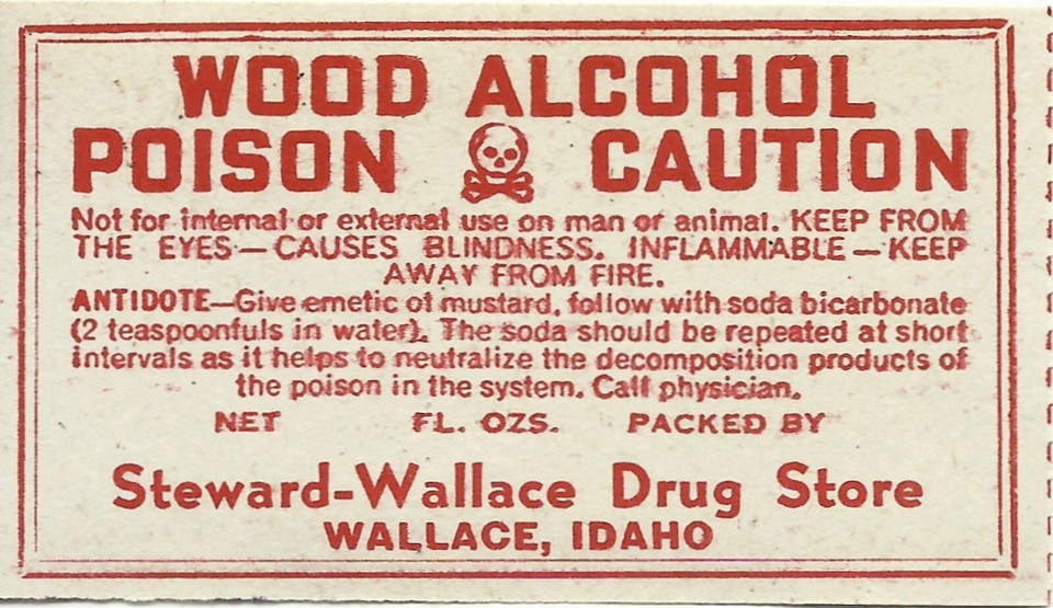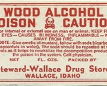 1 Vintage Pharmacy Label WOOD ALCOHOL POISON Steward-Wallace Drug Wallace Idaho