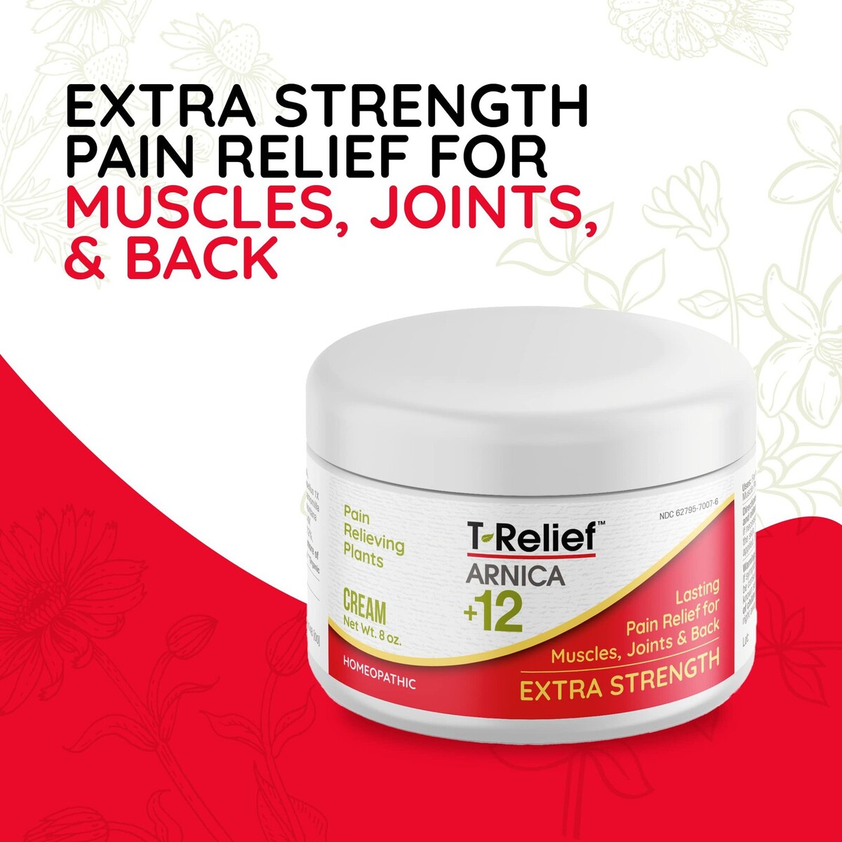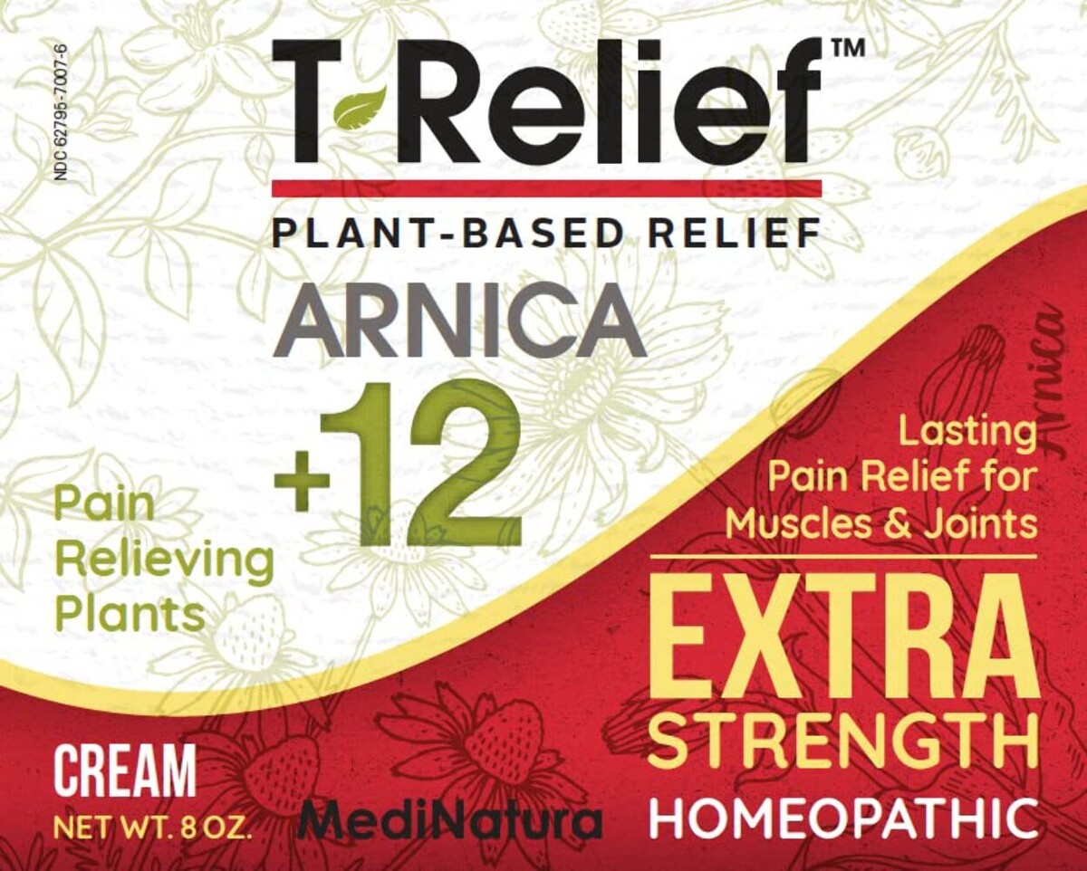 10/26 MediNatura T-Relief Extra Strength Cream Arnica +12 Natural Homeopathic Relieving Actives for Back Neck Joint Muscle Hand Foot Aches Pains Soreness - 8 oz