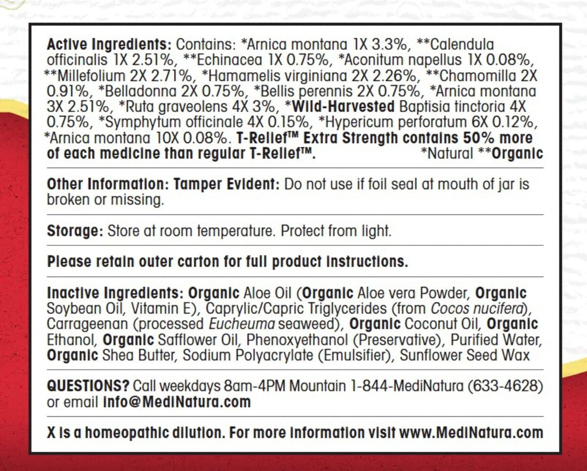 10/26 MediNatura T-Relief Extra Strength Cream Arnica +12 Natural Homeopathic Re