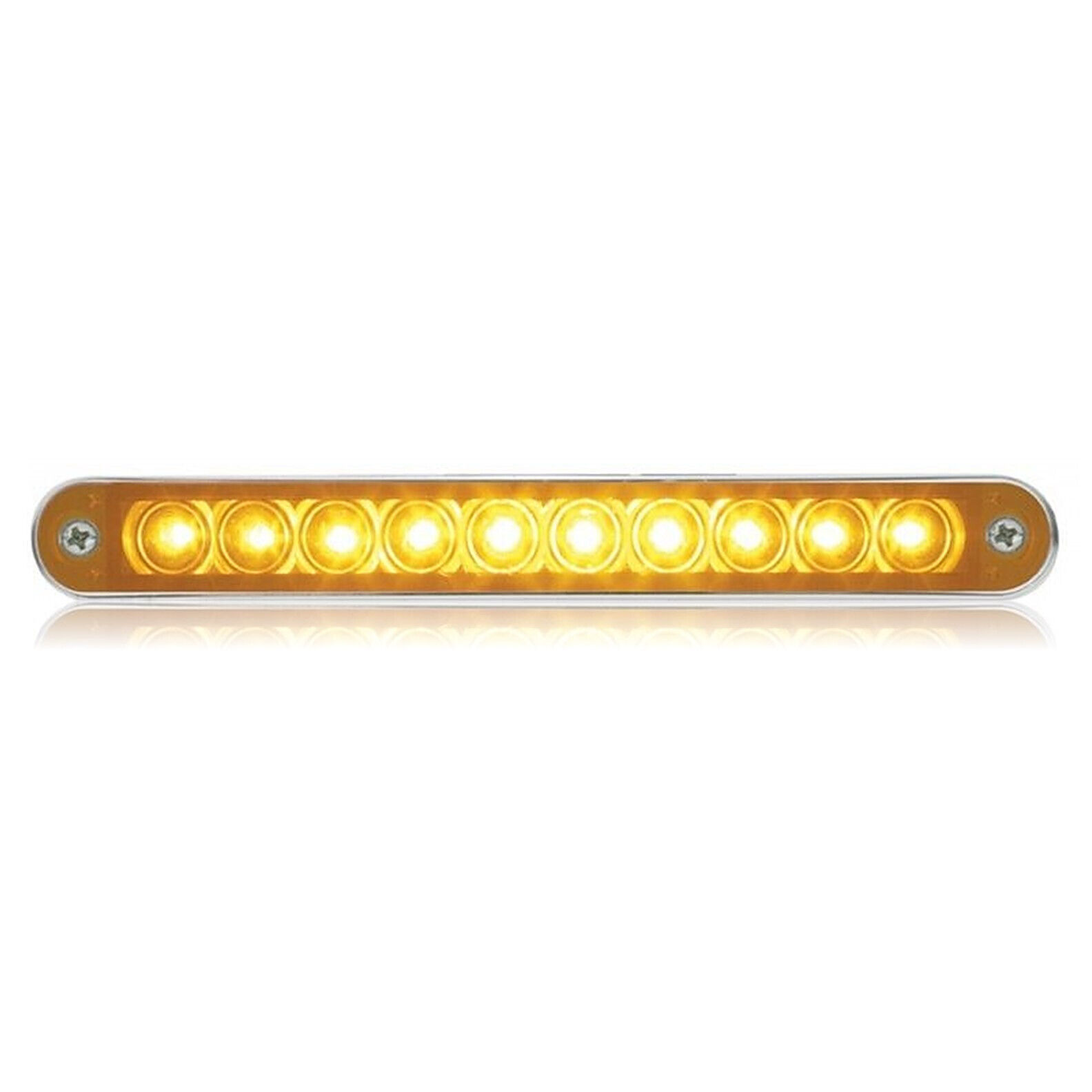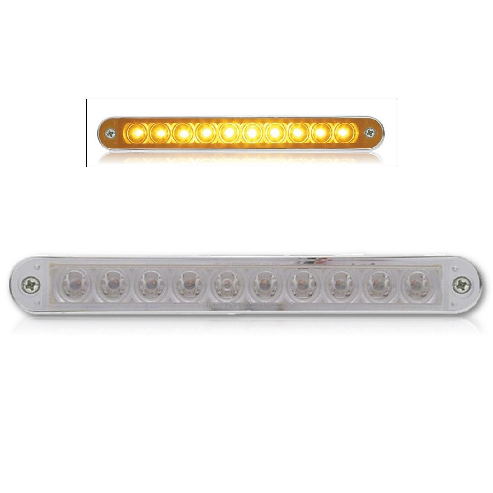 10 Amber LED 6-1/2" Flush Mount Turn Park Light Bar Clear Lens Chrome Bezel