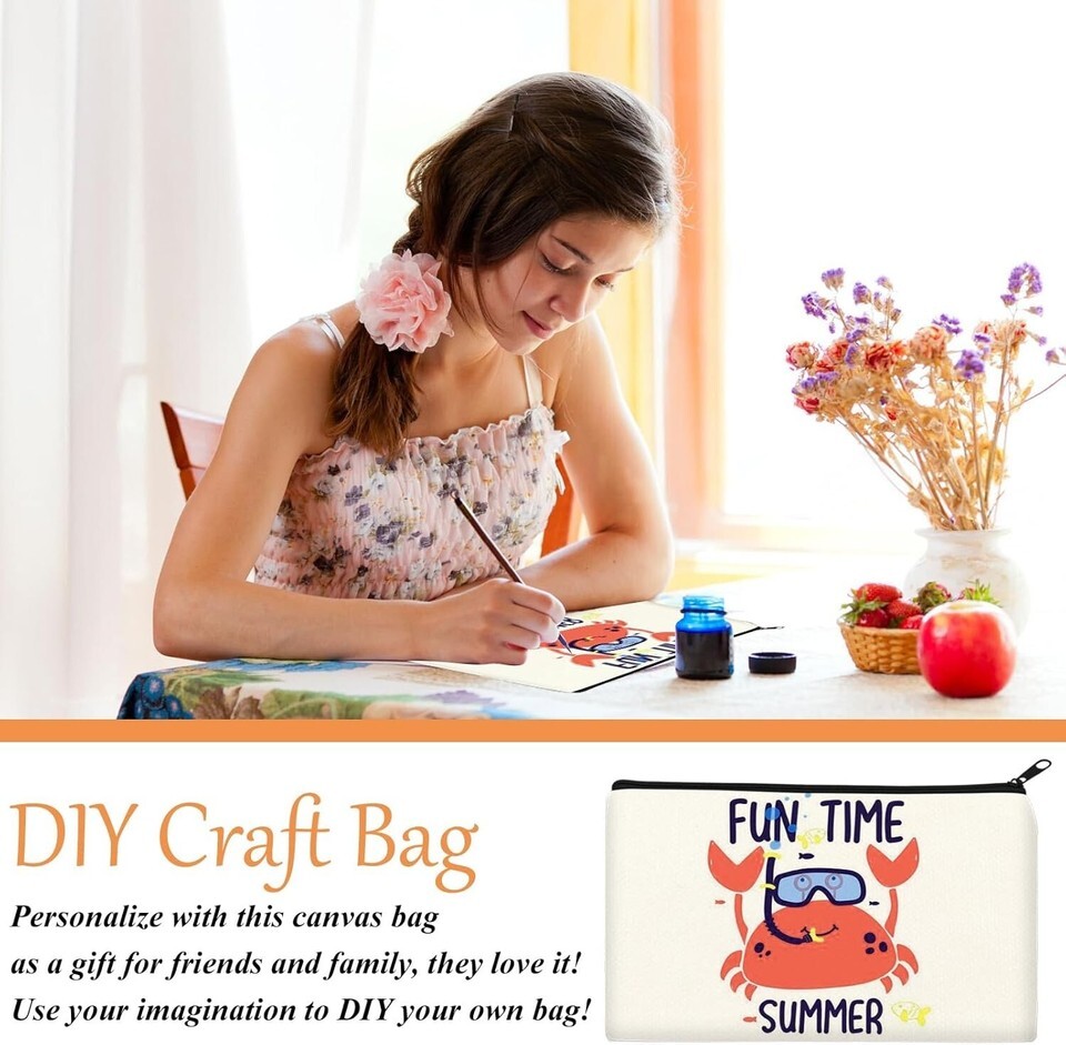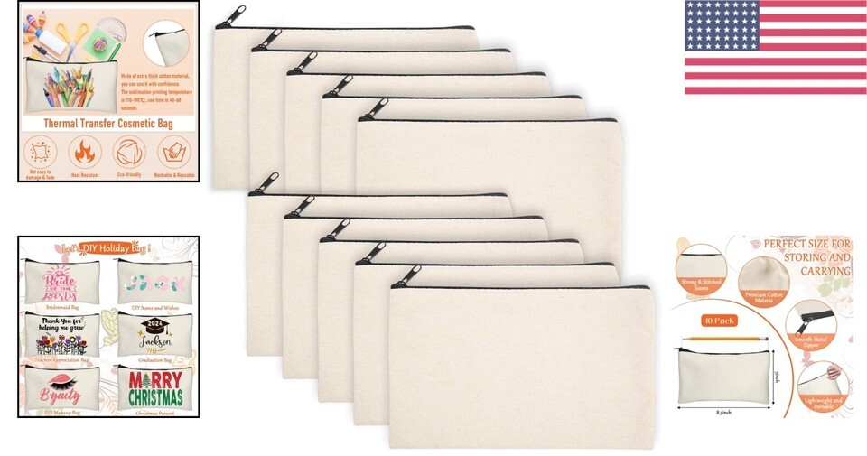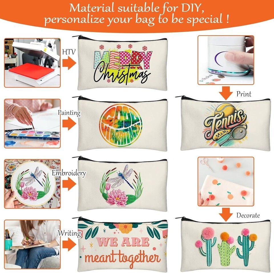 10 Blank Canvas Zip Bags - Ideal for DIY Crafts, Travel, and Cosmetic Storage