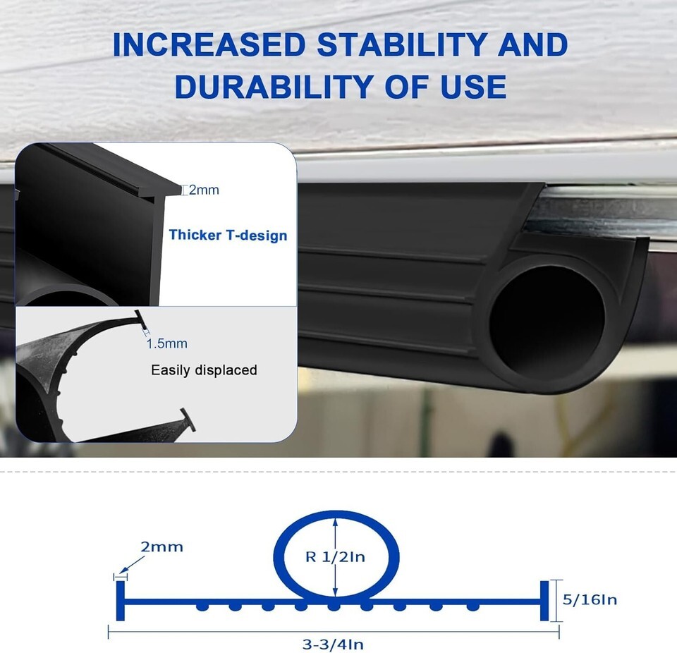 - 10 Ft Heavy-Duty Garage Door Weatherproof Seal Strip - Easy Install Rubber
