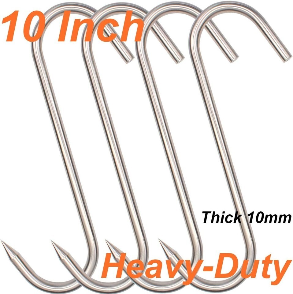 - 10 Inch Heavy Duty Stainless Steel Meat Hooks - Perfect for Processing & Smoking