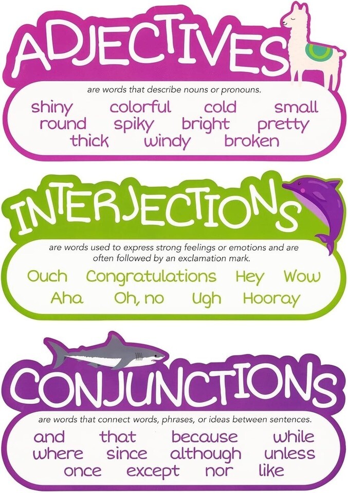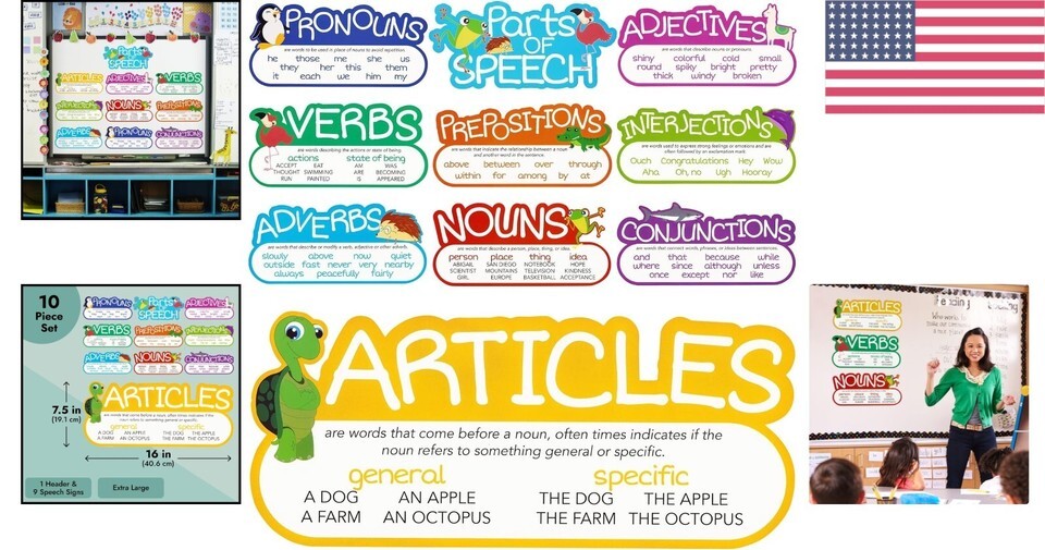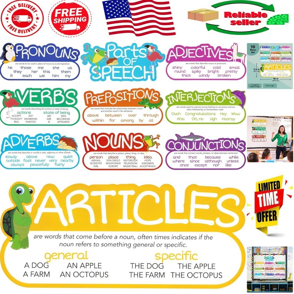 10 Oversized Parts of Speech Posters - Engaging Classroom Speech Therapy Decor ? ? ? ? ? ? ? ? ? ? ? ? ? ? ? ? ? ? ? ? ? ? 10 Oversized Parts of Speech Posters Engaging Classroom Speech Therapy Decor Features: Classroom must-haves for elementary and special education teachers. Decorative and educational, enhancing any learning environment. Versatile parts of speech posters designed in child-friendly language. Perfect for bulletin boards, doors, windows, or whiteboards. Includes a header sign and posters for nouns, verbs, adjectives, adverbs, pronouns, prepositions, conjunctions, articles, and interjections. Durable construction to withstand daily classroom use. Each poster measures 16 x 7.5 inches, featuring one-sided printing for maximum visibility. Benefits: Helps students reinforce grammar skills with confidence. Designed to engage students, especially those in special education. Covers complex speech concepts in a simple and understandable way. Built to last, ensuring that these teaching tools remain reliable over time. Transforms the classroom into a visually appealing and educational space. Encourages student interaction and fosters a love for language learning. Why Choose Our Parts of Speech Posters? Elevate your teaching experience with our 10 Oversized Parts of Speech Posters, specifically crafted for elementary and special education classrooms. These posters are not just visually stunning; they serve as fundamental teaching aids that simplify grammar concepts into accessible language for all students. Whether it?s enhancing your bulletin board or providing interactive visuals for speech therapy sessions, these posters cater to every educational need. Don't let the intricacies of language overwhelm your students. Instead, empower them with vibrant, engaging materials designed to spark curiosity and facilitate understanding. Transform your classroom environment today, and make learning fun with our essential parts of speech posters! Shipping Free Fast Shipping - We offer free shipping to most of the USA with a normal delivery time of 3-7 days. However, due to the current situation, additional delivery time (up to 3 weeks) may be required for some items. Alternative Carriers - We may use alternative carriers (e.g. USPS, FedEx, UPS, etc.) to ensure your package arrives safely and on time. Due to the use of multiple carriers, we are unable to provide a tracking number automatically. Handling Time - Orders are processed and shipped within 1-2 business days of receiving cleared payment. Shipping Restrictions - Shipping to Alaska, Hawaii, Puerto Rico, Guam, and other US territories may incur shipping charges or delivery restrictions. Please contact us before ordering, or your order can be refunded/cancelled. State Restrictions - There may be restrictions based on your state of purchase. For example, certain items may not be shipped to California due to state regulations. Contact for Tracking Updates - If you require tracking updates or have any concerns about the delivery of your order, please feel free to contact us, and we will be happy to assist you. Return 30-Day Hassle-Free Returns - We want you to be completely satisfied with your purchase. If you are not, you can return the item within 30 days of receiving it for a full refund or exchange. Easy Return Process - To start a return, simply contact us and we will provide you with a prepaid return shipping label and detailed instructions. Restocking Fee - There are no restocking fees for returns. However, the buyer is responsible for return shipping costs if the return is not due to a seller's error. Refund Processing Time - Refunds will be processed within 5 business days of receiving the returned item in its condition. Payment We accept all major credit cards, PayPal, and Apple Pay for your convenience. Your payment information is secure and encrypted to ensure a safe and seamless transaction. Please complete your payment within 3 days of purchase to avoid any delays in shipping. Feedback Your feedback is extremely important to us. We strive to provide the best products and customer service possible. If you are satisfied with your purchase, please take a moment to leave us a positive review. If you have any concerns or issues with your order, please contact us before leaving negative feedback. We are committed to resolving any problems and ensuring your satisfaction. Contact Us If you have any questions or concerns, please feel free to out to our customer support team. You can contact us through the messaging system. We are available Monday to Friday, 9:00 am to 5:00 pm EST, and we will do our best to respond to your inquiry within 24 hours. Buy it now and enjoy a pleasant shopping experience! Model: Parts of Speech Posters Unit Quantity: 10 Item Subtype: Sets Color: Multi-Color Theme: Educational With Animals Style: Educational with Animals Unit Type: oz