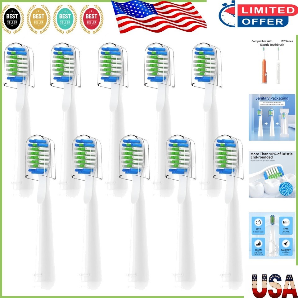 10-Pack Bitvae D2 Electric Toothbrush Replacement Heads - White & Sanitary Pack
