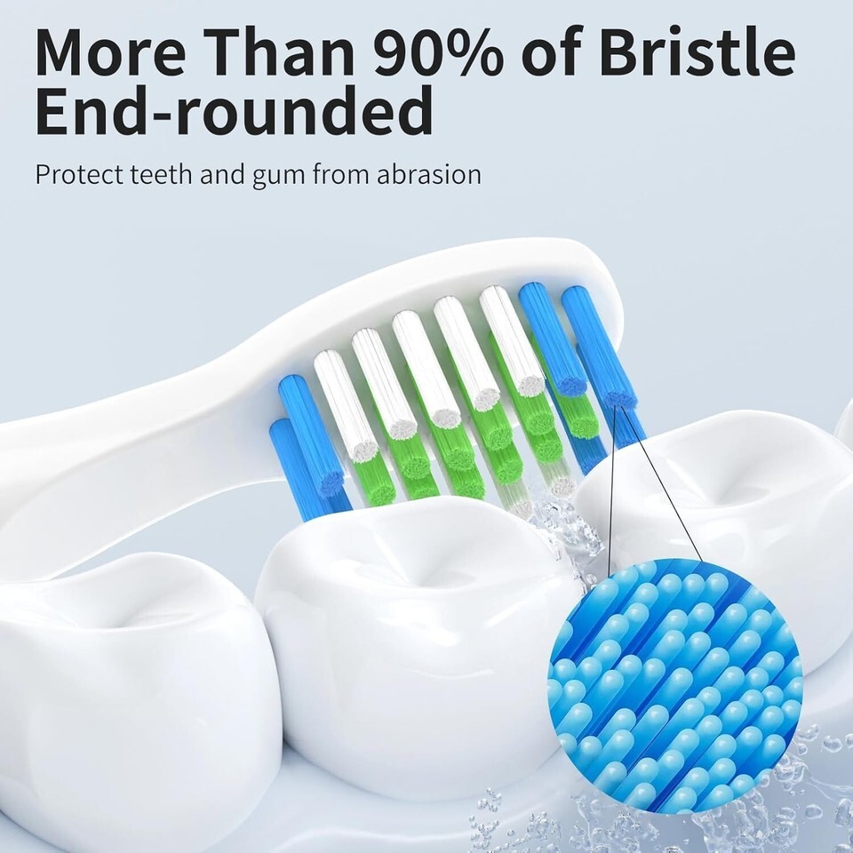 The rounded tops of 95%-98% of the bristles ensure teeth protection while brushing in high vibration.