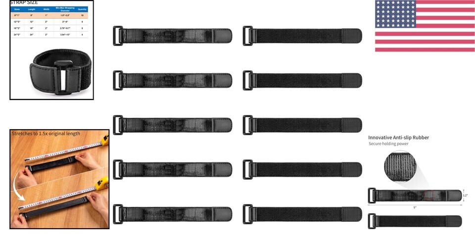 10-Pack Heavy Duty Elastic Cinch Straps with Anti-Slip for Ultimate Organization