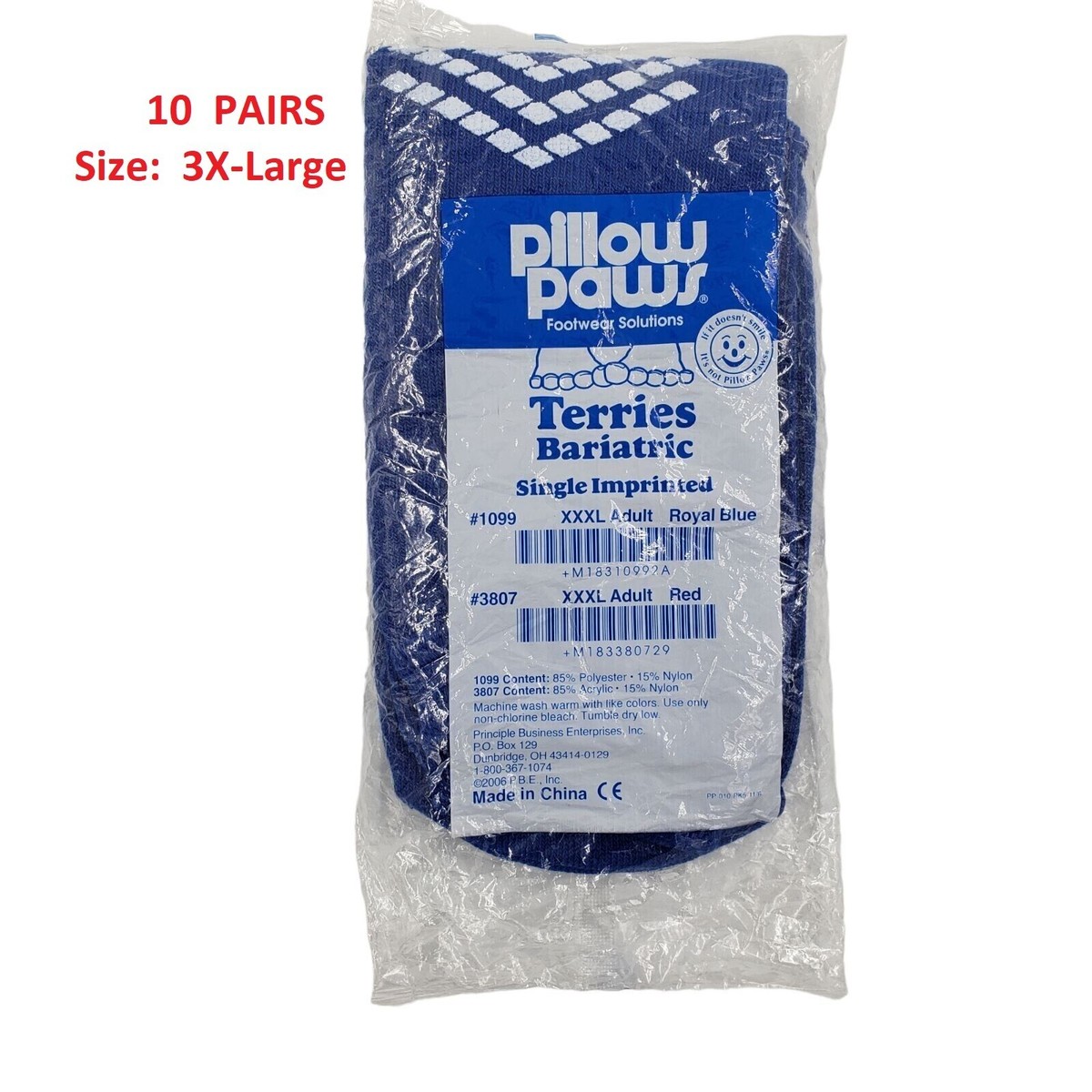 - 10 Pairs, Non-Skid Hospital Slipper Socks Pillow Paws Bariatric 3X-Large Blue