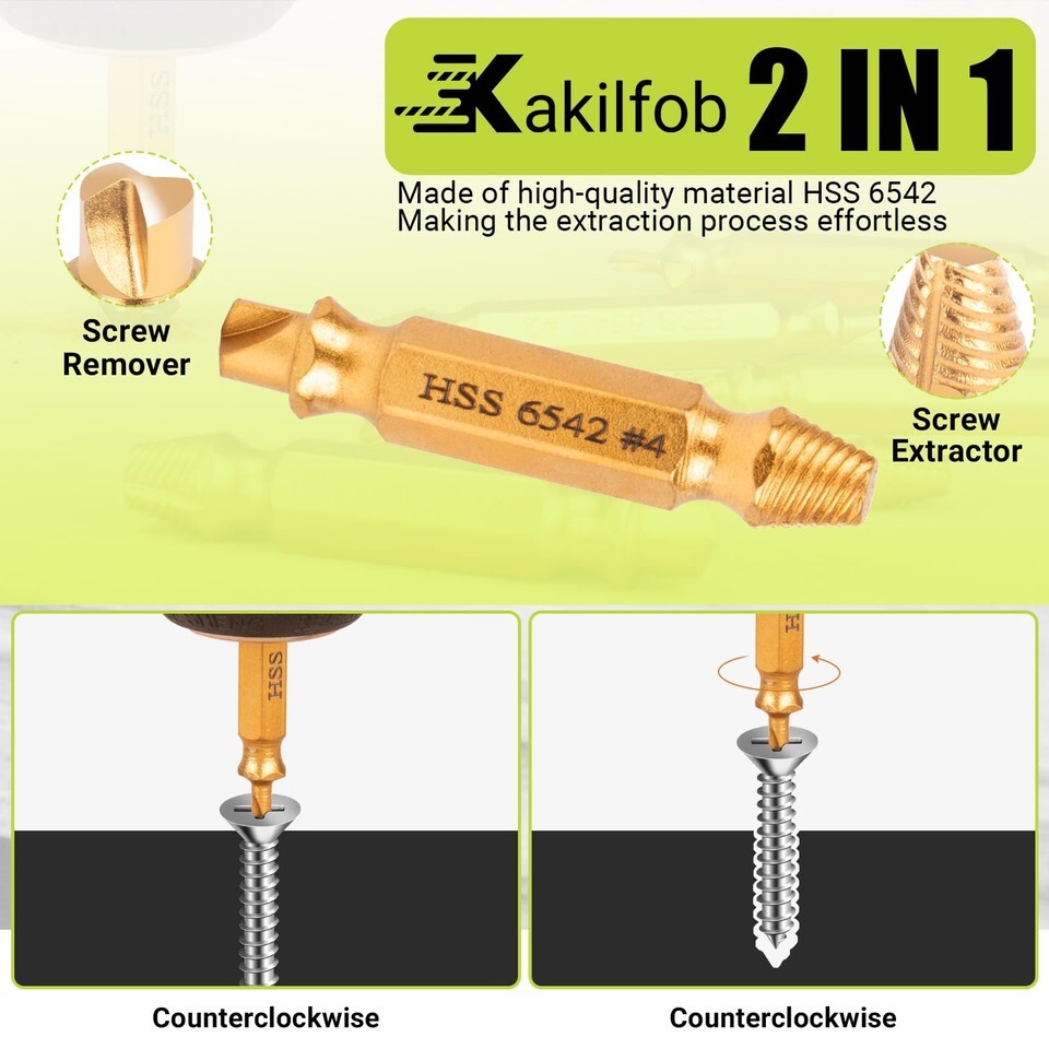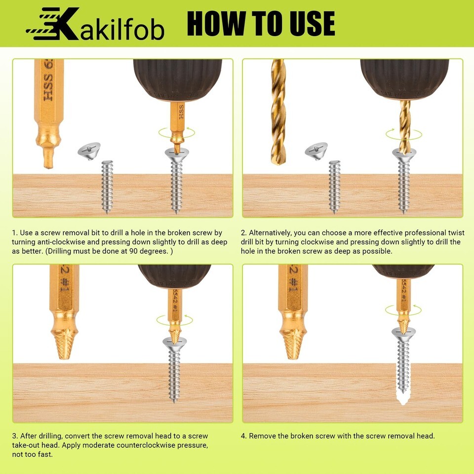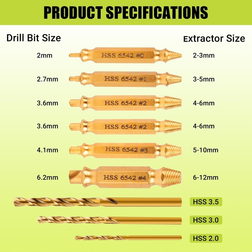 Damaged Screw Extractor: The screw extractor is made of high hardness 6542 steel, it can improve durability and service life. Which can effectively handle stripped or damaged screws. It has 6 pieces of HSS 6542 screw extractor set (#0, #1, #2, #2, #3, #4) and 4 pieces of HSS 6542 twist drill bit set (HSS2.0, HSS2.0, HSS3.0, HSS3.5) EASY TO USE: Just two simple steps to get the job done - use the correct size screw extractor to drill a hole with the cutting size (or use an extra four drill bit to drill a hole), then use the removal tool to remove the screw or bolt easily. Cool Stuff: Who won't know they need screw extractor set until they have one! Everyone can be gifted to your loved ones as it reflects a fresh trend with fun and practical. Amazing and Unique tool gifts for men, women. The must-have stocking stuffers for those who need, gifts for dad, husband, father, him, guy teens, adult, Boyfriend, son on Birthdays, Christmas, Father's Day or anniversary. Every festival may need it. Easily to Remove: 10-piece screw extractor set for a variety of screw sizes. These simple extraction tools are perfect for removing broken, rounded, rusted and stripped screws in a variety of DIY and repair projects, making the whole process easier and more efficient than ever. Handy set to have in any tool box. We offer 1-5 Days Free shipping 30-Days Free returns