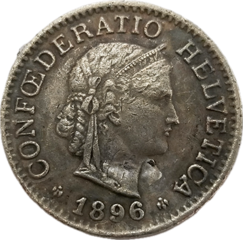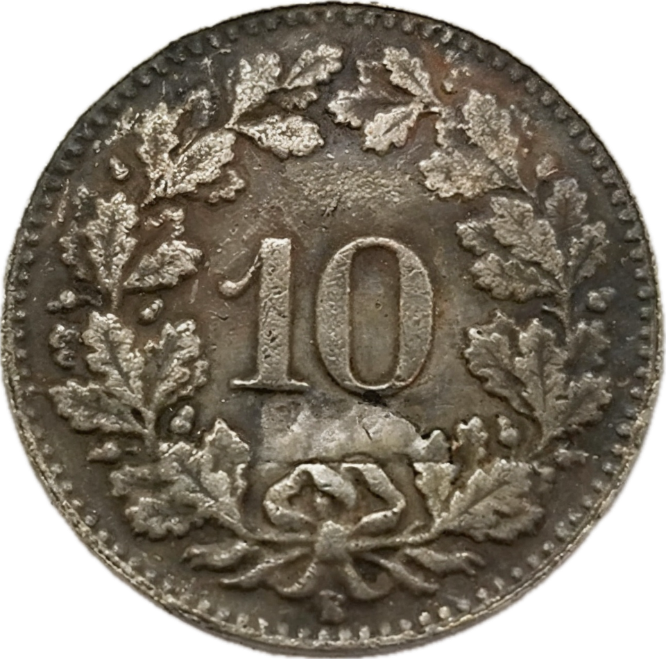 - 10 Rappen Suiza 1896 – Reedición "Helvetia con corona de roble"