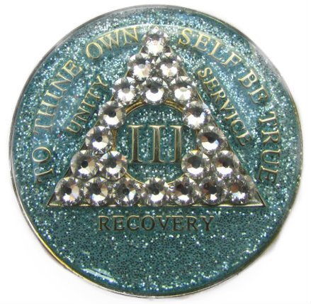 - 10 Year Aqua Glitter with Diamond Swarovski Crystals Tri-Plate Alcoholics Anonym
