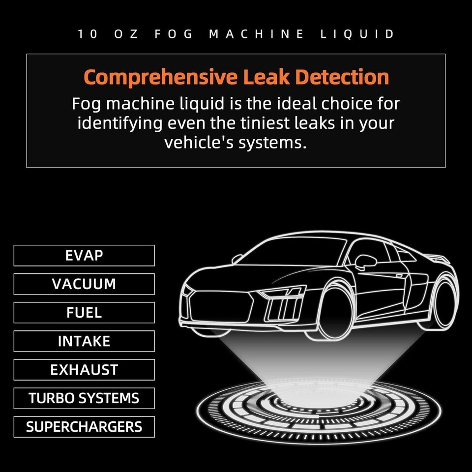This smoke machine liquid is your go-to solution for identifying even the smallest leaks in your vehicle's systems, from EVAP to turbochargers. Quick to produce dense smoke, it guarantees reliable leak detection that you can trust.