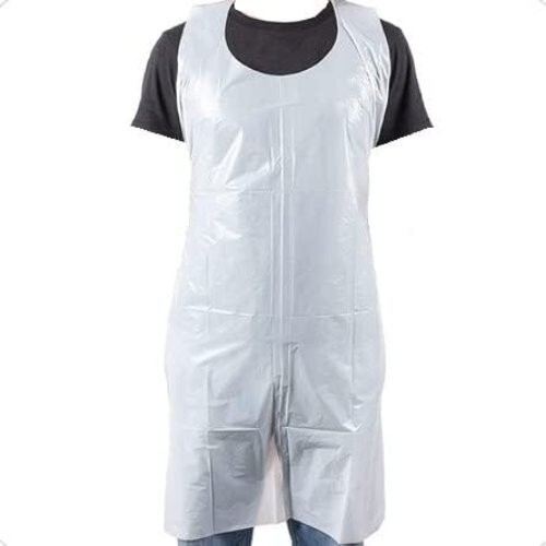 - 100 Pack Box Large White Plastic Disposable Aprons Throw Away Waterproof Aprons