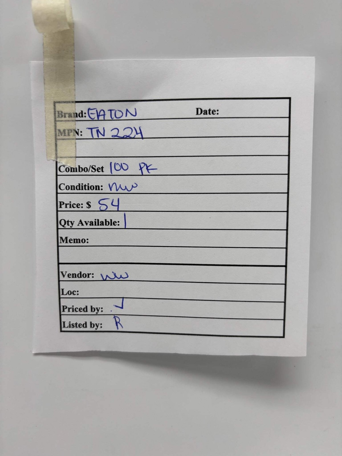100 PK EATON TN-224 (1/4) TWIRL NUT Zinc Plated Finish B-Line Series 100 PK EATON TN-224 (1/4) TWIRL NUT Zinc Plated Finish B-Line Series New - Same Day Ship The 100 PK EATON TN-224 (1/4) Twirl Nuts are specialized fasteners designed for use in strut channel framing systems. With a 1/4" thread size and zinc-plated finish, they offer reliable corrosion resistance and durability in various installation environments. Listed by: Richard (Sales Team) -any kid will run an errand for you...if you ask at bedtime. -RRW (A positive moment brought to you by Help Resale) About Us Welcome to Help Resale, your go-to consignment shop where value meets quality. At Help Resale, we're dedicated to providing you with an exceptional shopping experience, whether you're looking to find the best deals or consign your items. Need to buy a product, but don't see it in our store? Please feel free to reach out to us and we will help you find it! Help Resale 7200 Fair Oaks Blvd Suite 120 Carmichael CA 95608 Business Hours: Monday-Friday: 9:00 am to 5:00 pm (PST) All product and company names are trademarks TM or registered trademarks of their respective holders. Use of them does not imply any affiliation with or endorsement by them. (description exceeds maximum possible length)
