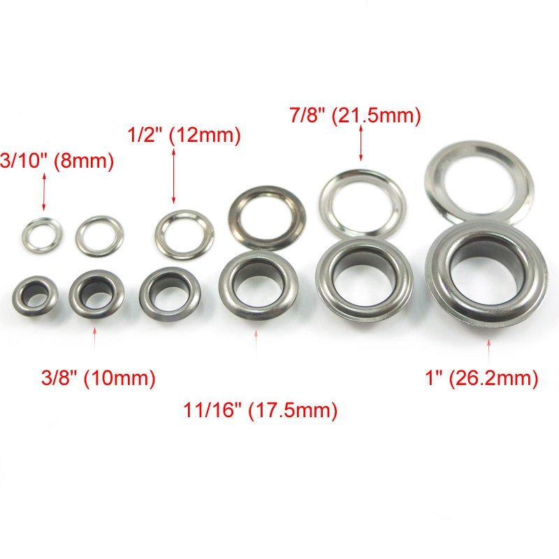 - 100 sets 3/16" 4mm 1/4" 6mm 3/10" 8mm 3/8" 10mm 1/2" 12mm 17.5mm 7/8" 21.5mm 1"