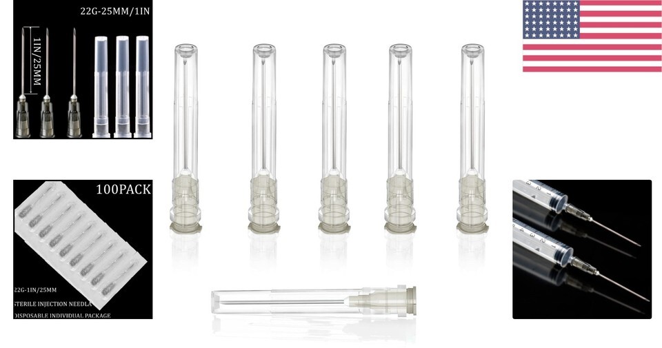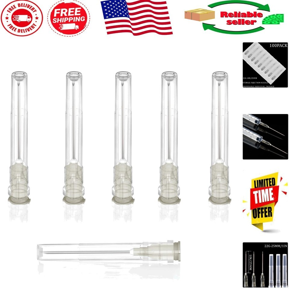 100Pack 22Ga 1 Inch Disposable Needles for Lab & Craft Use - Individually Sealed