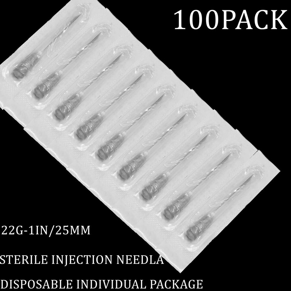 100-Pack 22Ga 1 Inch Disposable Needles
