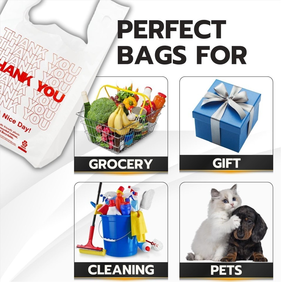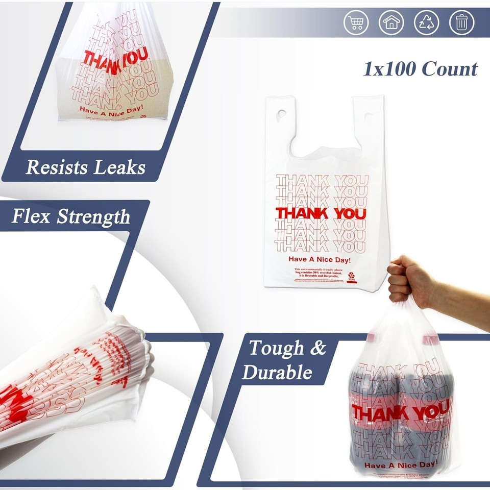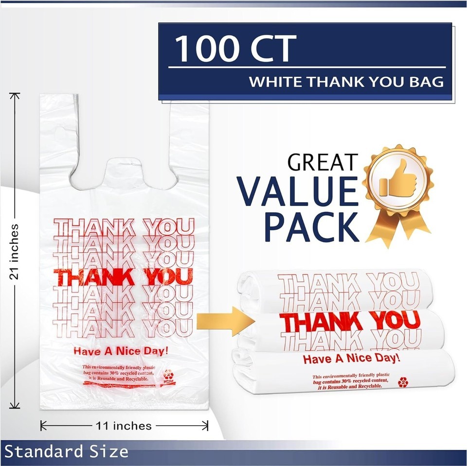 100Pcs White Thank you T shirt bag Grocery shopping bag 11 x 6 x 21 inches