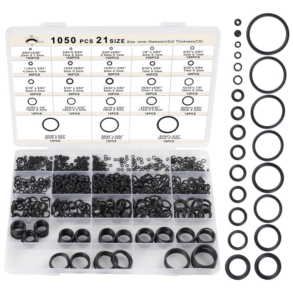 1050 Pcs O Ring Kit 21 Size Nitrile Rubber Assortment Set for Car Auto Vehicle Repair Faucet Plumbing Air or Gas Sealing Connections Resist Oil and Heat