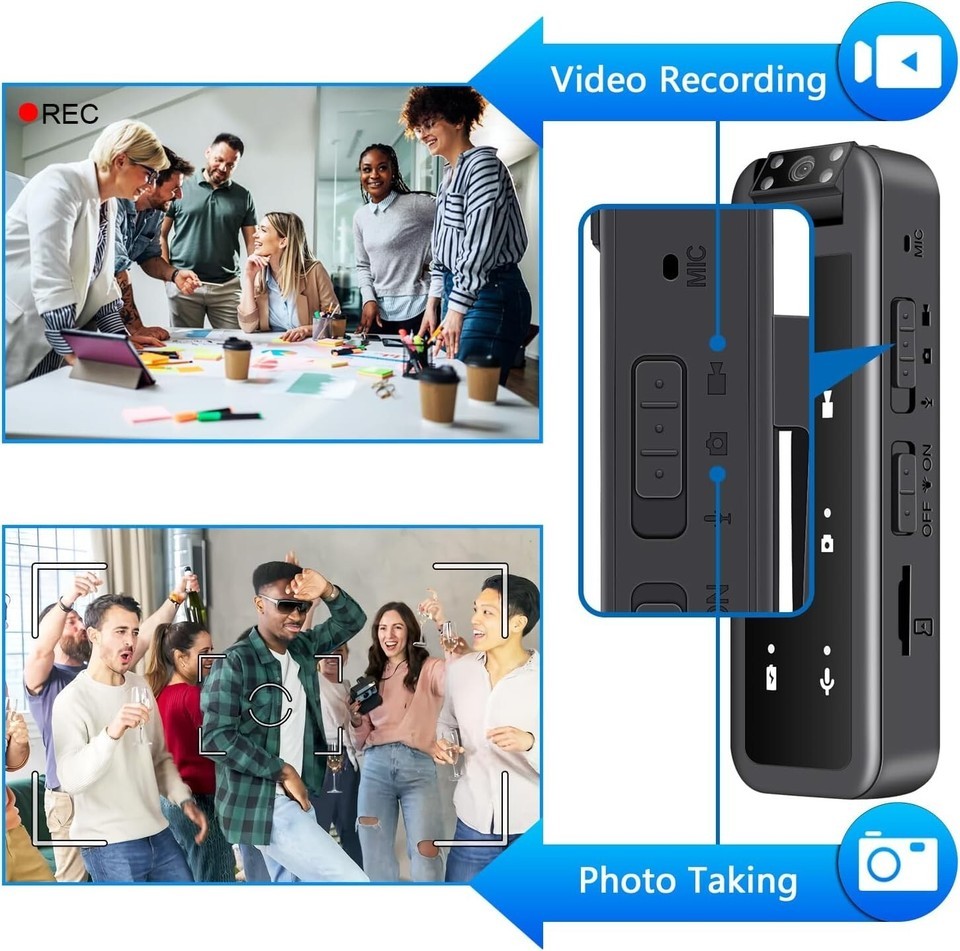Night Vision: Equipped with advanced night vision, this mini body camera ensures clear recording even in low-light or dark environments.