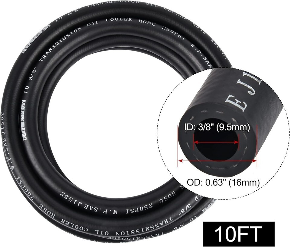 Size: ID: 3/8 inch (9.5mm); OD: 0.63 inch (16mm); Length: 10 feet.