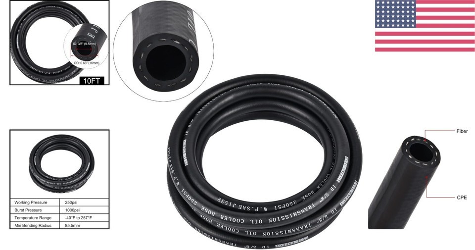- 10FT 3/8" CPE Hose - 250PSI Working Pressure - Ideal for Oil & Hydraulic Fluids