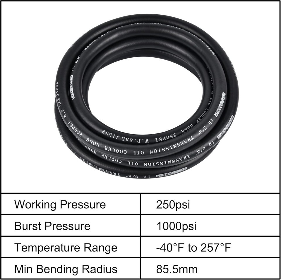 When it comes to hydraulic operations and automotive applications, you deserve nothing but the best. Our 10FT 3/8" CPE Hose stands out with its superior construction, boasting a robust working pressure of 250psi and a remarkable burst pressure of 1000psi, making it the perfect choice for high-demand settings. With temperature resistance from -40F to 257F, it's designed to thrive in challenging environments.