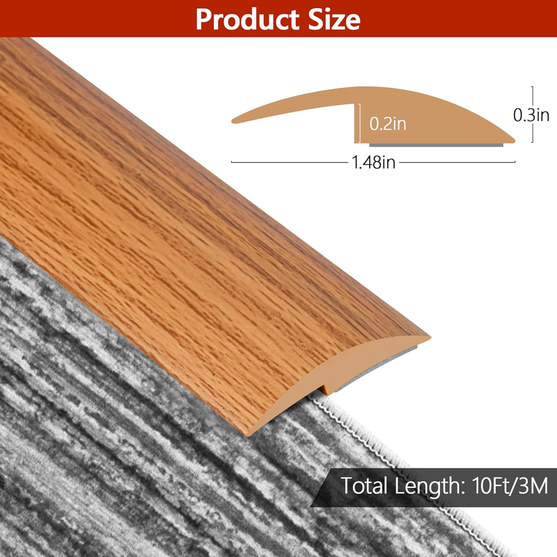?Super Long Size?The size of the rubber transition strip is 10Ft, which is longer than other similar products, enough length for you to cut freely, no worry about it running out early. The transition strips for laminate flooring is waterproof, lightweight, easy to clean and maintain, suitable for home use.