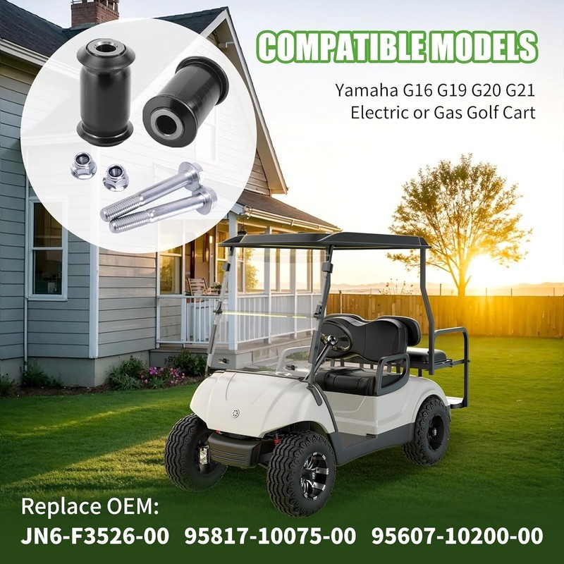 The lower arm bushing fits Yamaha G16 G19 G20 G21 gas and electric golf cart. OEM part# JN6-F3526-00 95817-10075-00