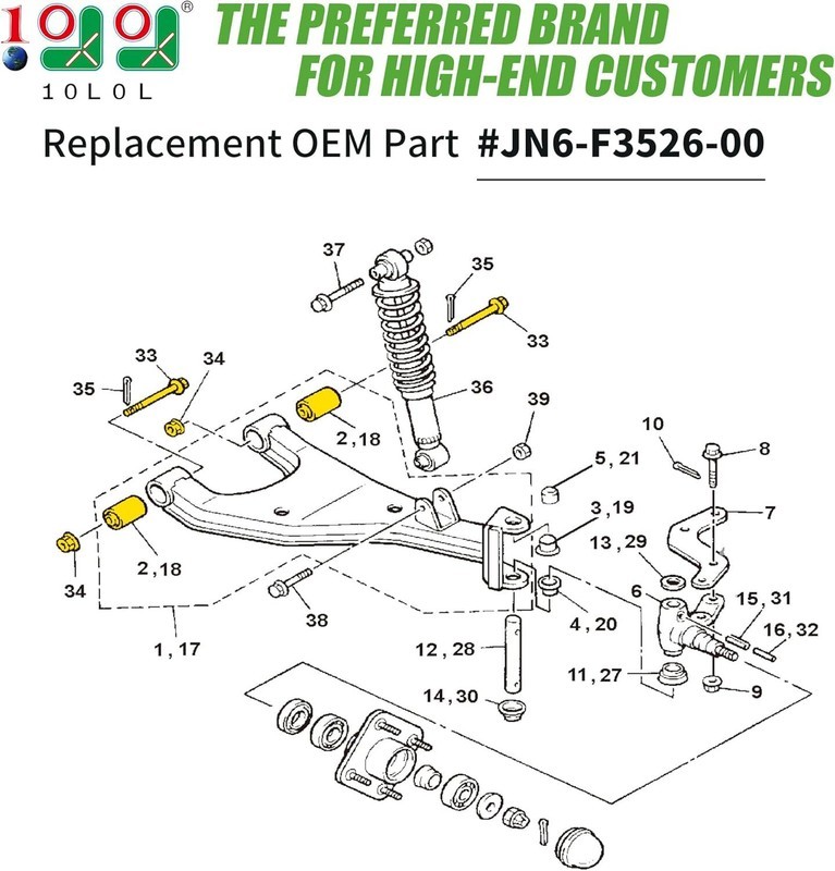 10L0L Golf Cart Front Lower Control Arm Bushing Kit for Yamaha G16-G21
