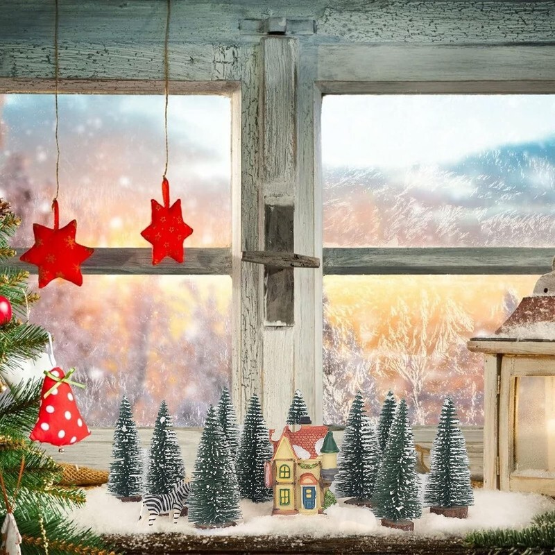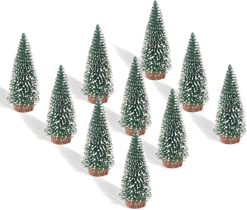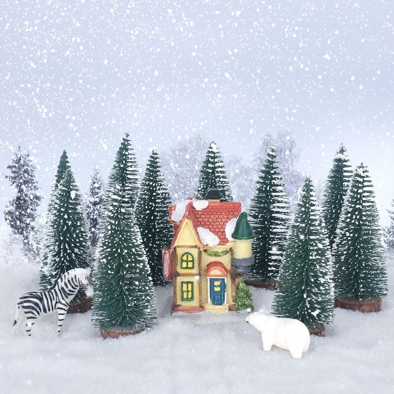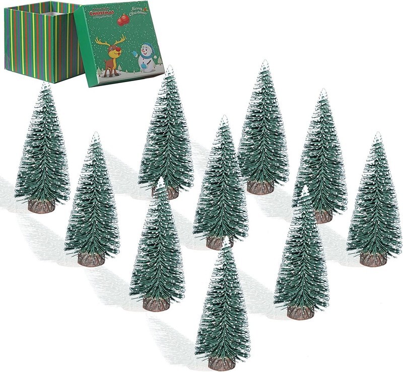 10PCS 4Inch Mini Snow Frost Trees Mini Christmas Tree Plastic Winter Snow Orname