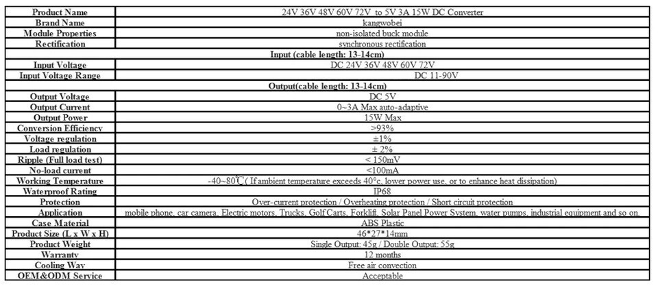 11-90V to 5V Buck Converter 24V 36V 48V 60V 72V Convert to 5V 1A 2A 3A DC DC Step Down Car Power Supply for GPS Tablet Camera