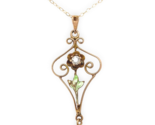 10k Gold Diamond Lavaliere Pendant w/Enamel Leaves Pearl Drop 14k Chain (#J6972)