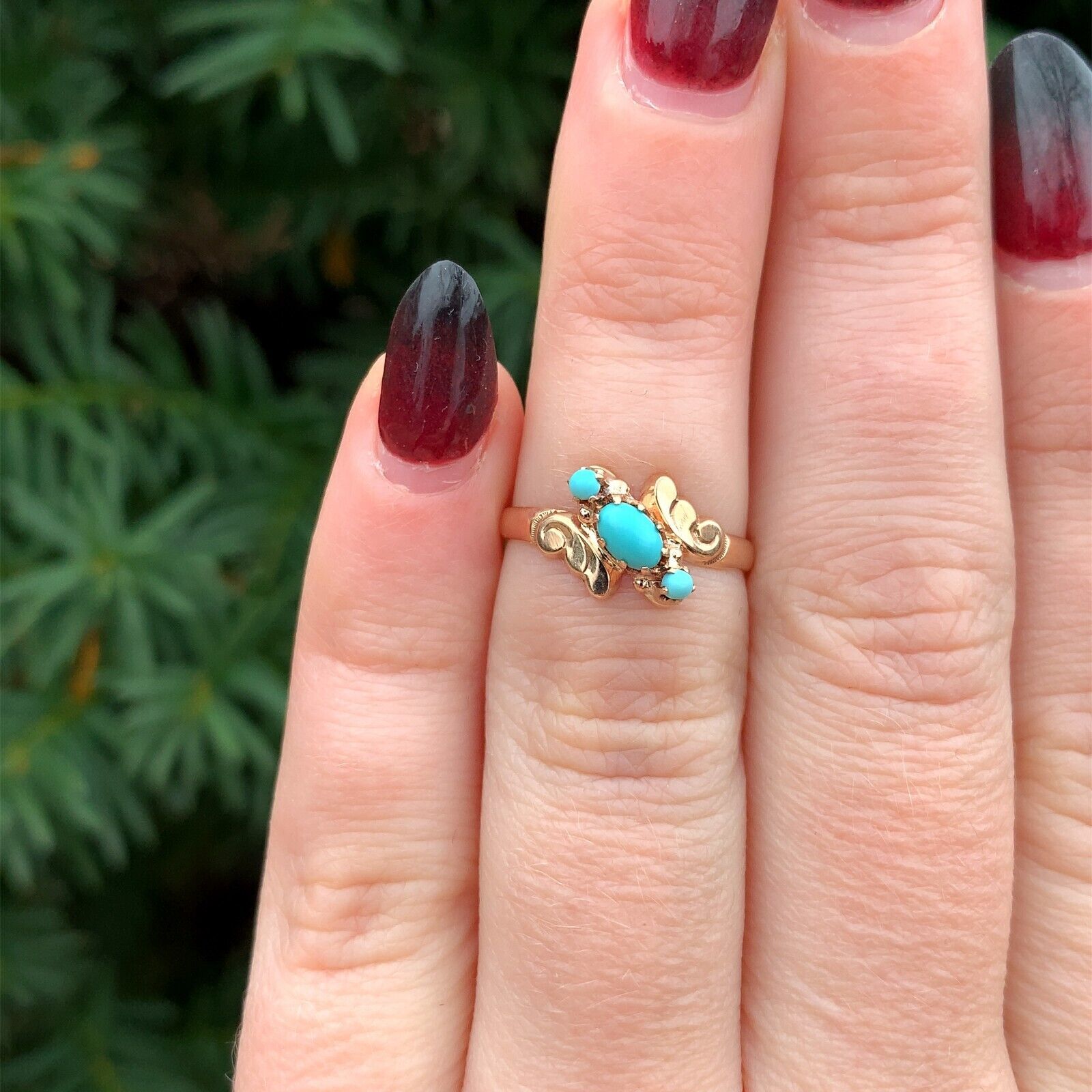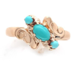 10k rose gold turquoise ring. There are three small genuine turquoise