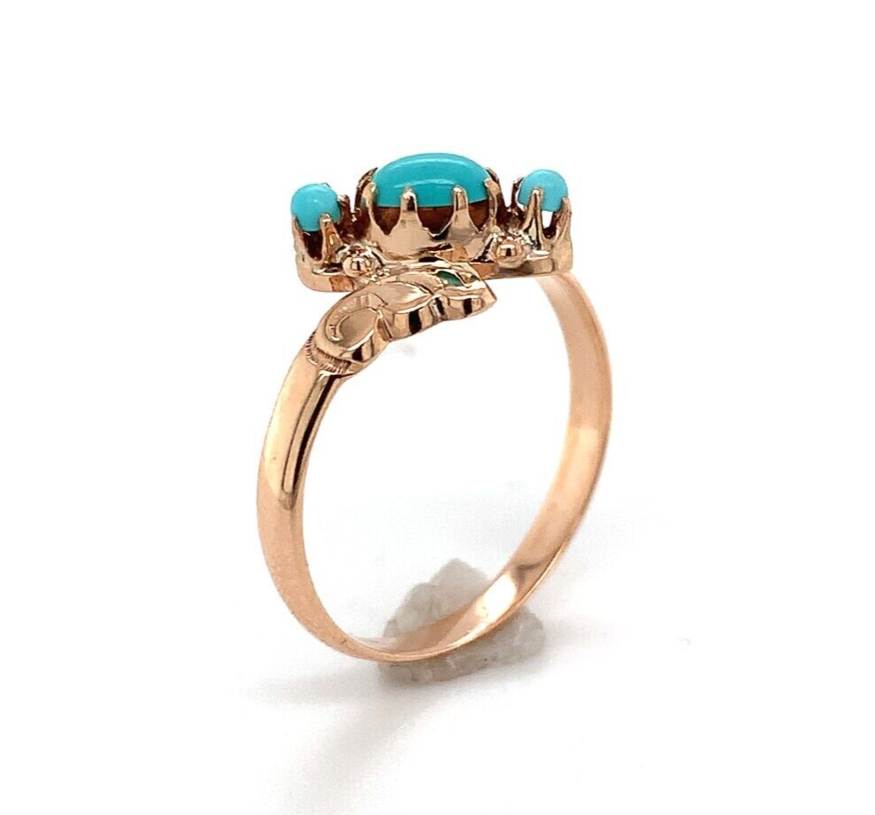 10k Rose Gold 3 Stone Genuine Natural Turquoise Ring Size 5.5 Jewelry (#J6359)
