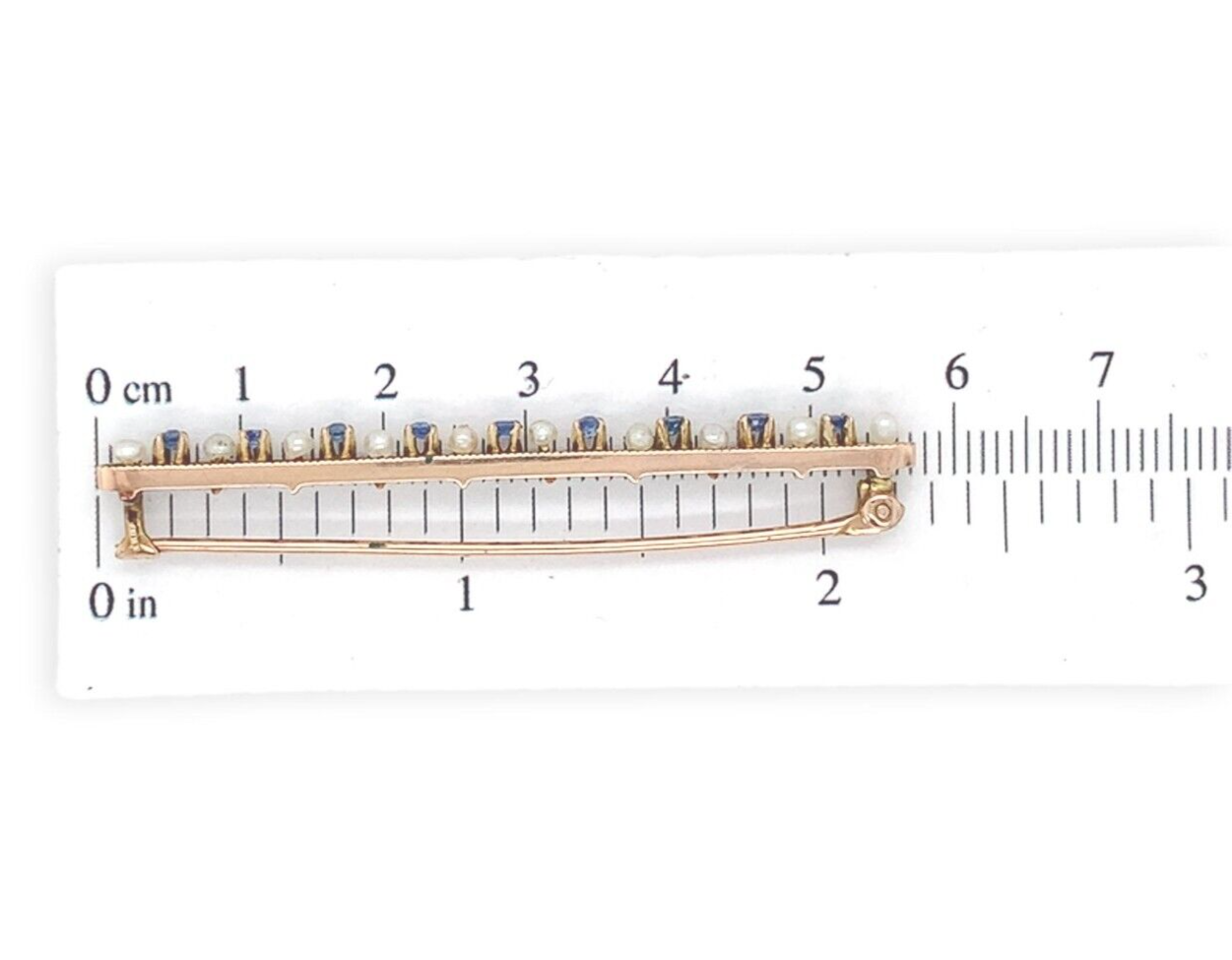 - 10k Yellow Gold Antique Montana Sapphire and Pearl Bar Pin Jewelry (#J7046)