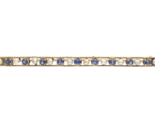10k yellow gold antique bar pin featuring eight round Montana blue sapphires and ten seed pearls. The sapphires have cornflower blue color and measure about 2mm. There is one replacement sapphire which is more oval but similar in color. The pearls measure about 2.1mm.