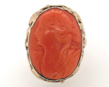10k Yellow Gold Genuine Natural Coral Cameo Ring Arts and Crafts Leaves (#J6031)