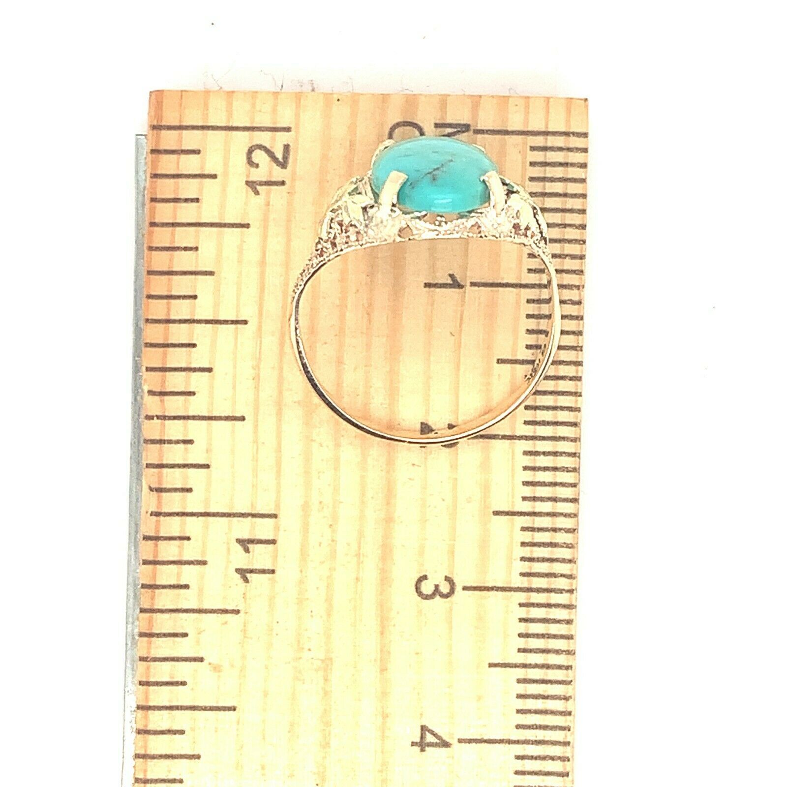 10k Yellow Gold Vintage Genuine Natural Turquoise Ring Applied Flowers (#J5213)